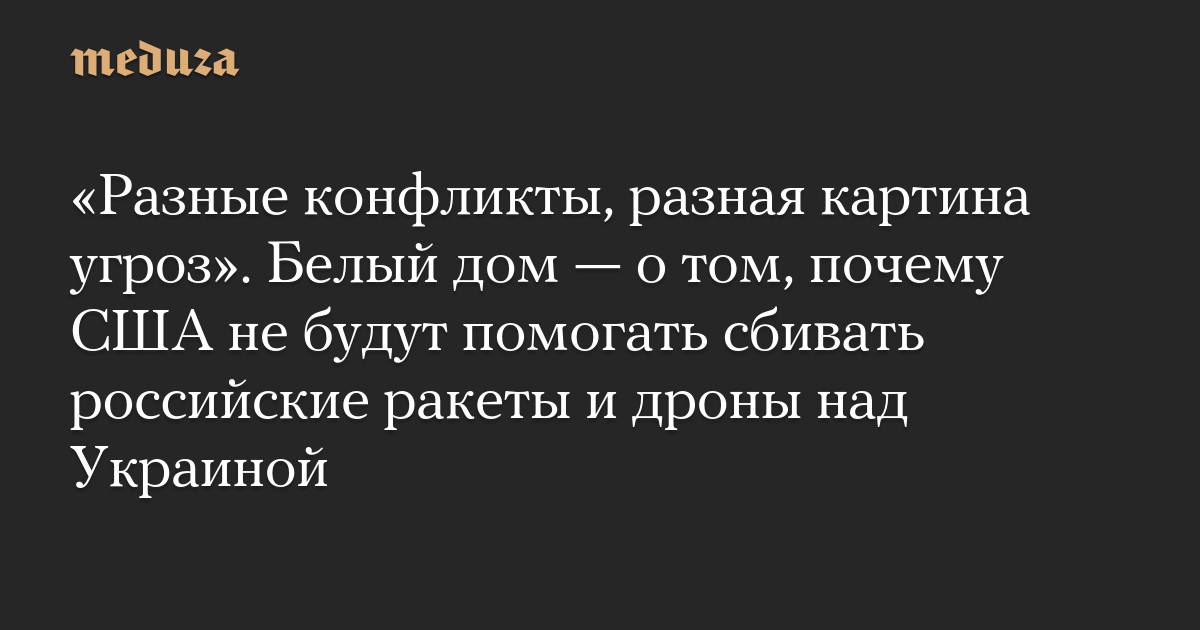 «Разные конфликты, разная картина угроз». Белый дом — о том, почему США не будут помогать сбивать российские ракеты и дроны над Украиной
