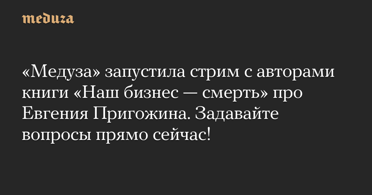 «Медуза» запустила стрим с авторами книги «Наш бизнес — смерть» про Евгения Пригожина. Задавайте вопросы прямо сейчас!