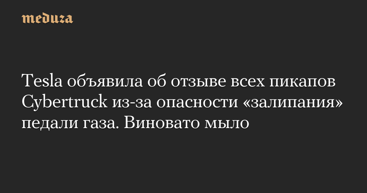 Tesla объявила об отзыве всех пикапов Cybertruck из-за опасности «залипания» педали газа. Виновато мыло