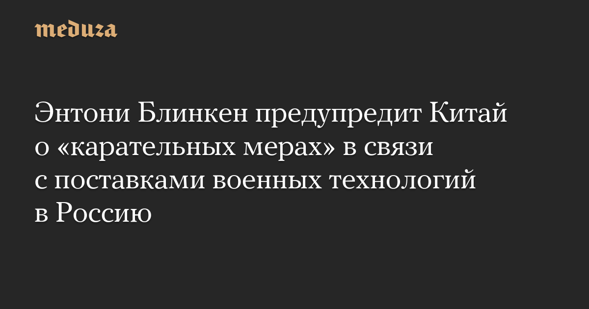 Энтони Блинкен предупредит Китай о «карательных мерах» в связи с поставками военных технологий в Россию