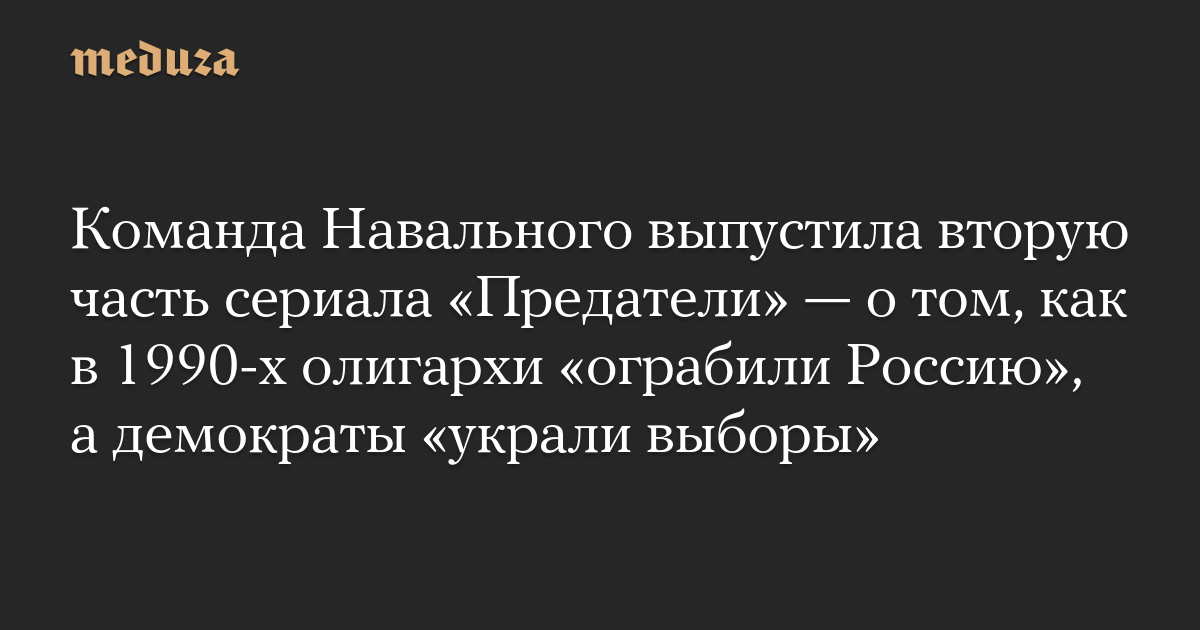 Команда Навального выпустила вторую часть сериала «Предатели» — о том, как в 1990-х олигархи «ограбили Россию», а демократы «украли выборы»