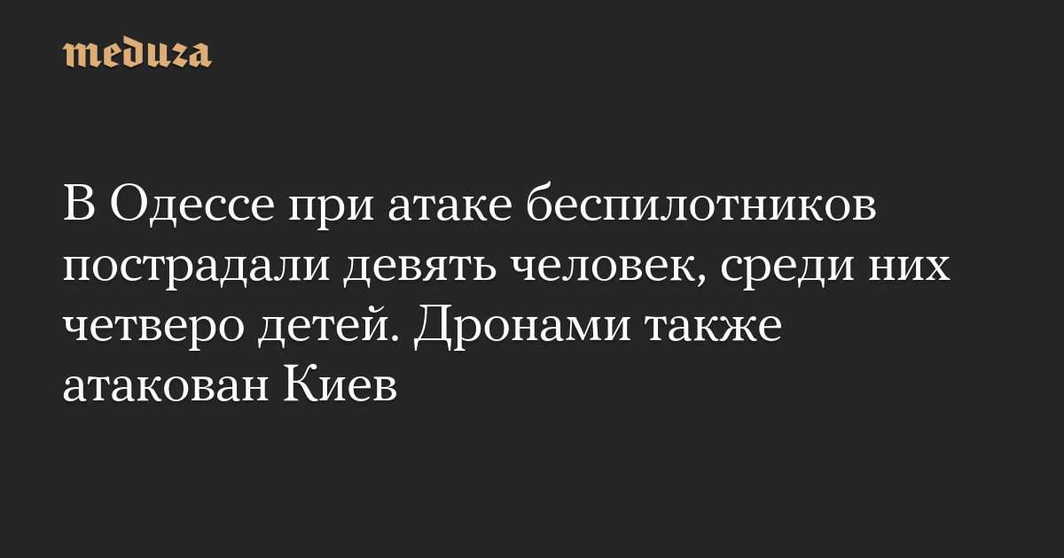 В Одессе при атаке беспилотников пострадали девять человек, среди них четверо детей. Дронами также атакован Киев