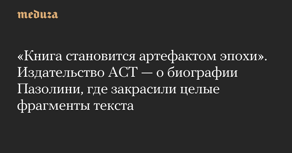 «Книга становится артефактом эпохи». Издательство АСТ — о биографии Пазолини, где закрасили целые фрагменты текста