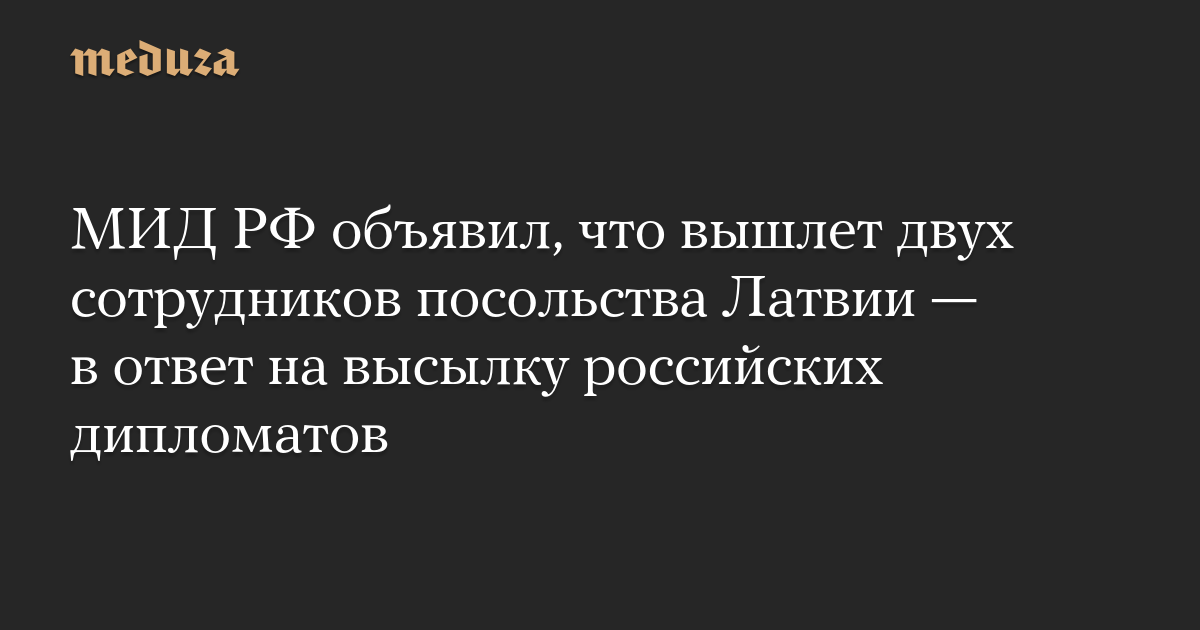 Российское ведомство не уточнило, когда Латвия выслала дипломатов РФ. В конце марта МИД Латвии сообщил, что высылает одного сотрудника посольства России в Риге. Ведомство объяснило свое решение тем, что российское посольство «продолжает заниматься неуместными публичными коммуникациями, направленными на дискредитацию государственных институтов и властей Латвии и разжигание ненависти в латвийском обществе».