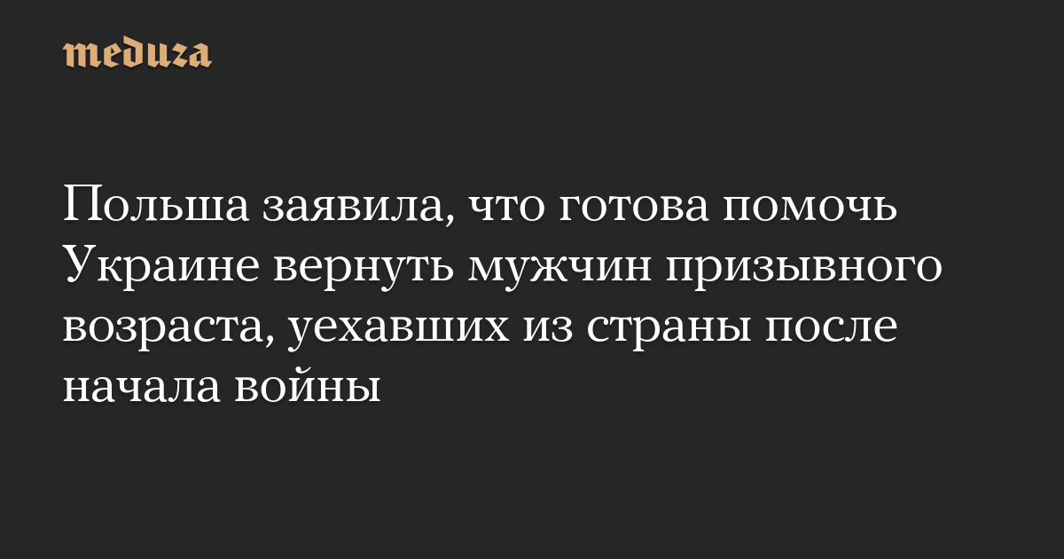 Как именно Польша будет помогать вернуть мужчин призывного возраста в Украину, министр обороны уточнять не стал, заявив лишь, что «возможна любая помощь».