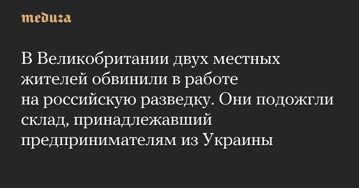 В Великобритании двух местных жителей обвинили в работе на российскую разведку. Они подожгли склад, принадлежавший предпринимателям из Украины