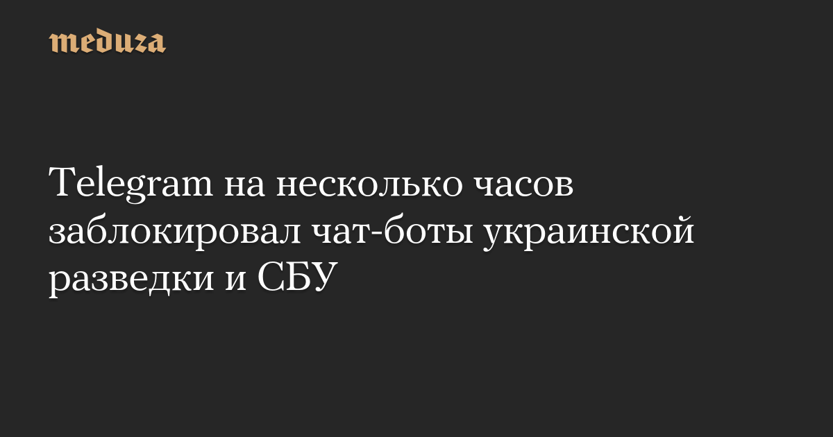 Как заявило Главное управление разведки (ГУР) Минобороны Украины, руководство Telegram «необоснованно заблокировало ряд официальных ботов, которые противодействовали военной агрессии России против Украины». В частности, заблокирован «Главный бот разведки», созданный ГУР.