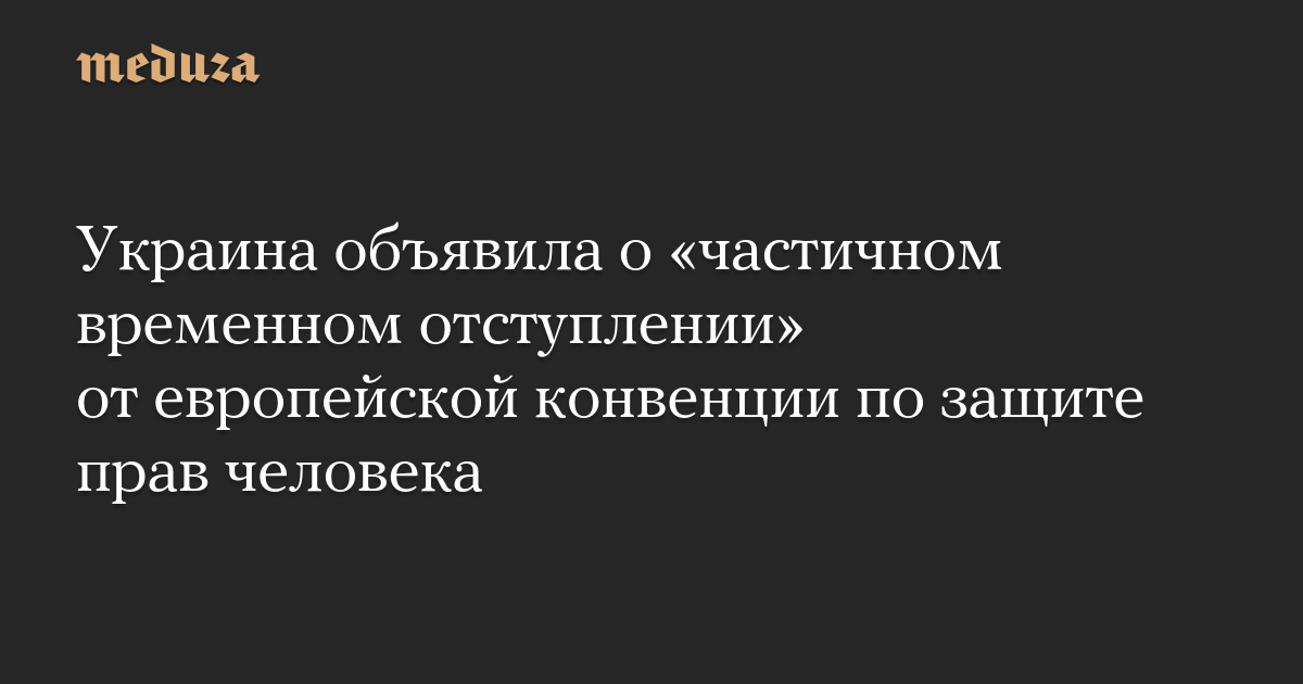 Украина уведомила Совет Европы «о частичном временном отступлении от соблюдения Европейской Конвенции о защите прав и свобод человека». Соответствующий документ, обратили внимание украинские СМИ, включая «Бабель», был опубликован на сайте Совета Европы 29 апреля. Уведомление датировано 4 апреля.