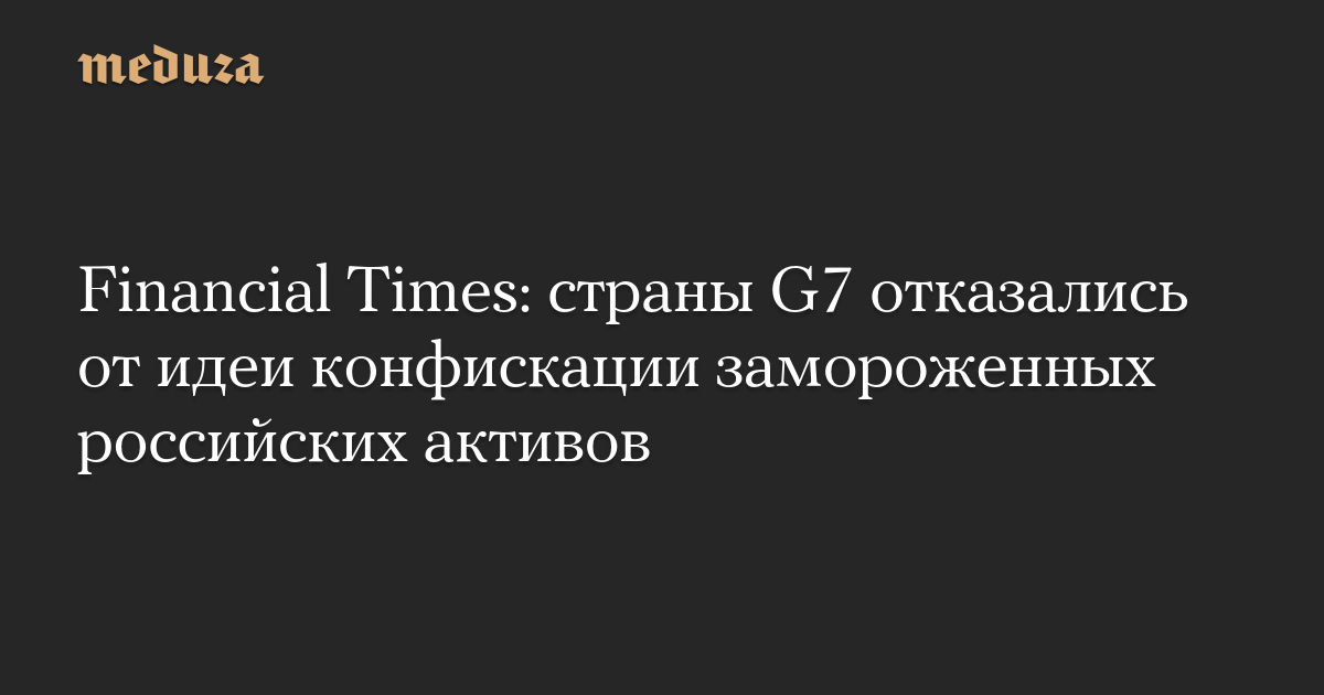 G7 больше не рассматривают возможность конфискации активов российского Центробанка, замороженных с начала полномасштабной войны, пишет Financial Times со ссылкой на чиновников стран «Большой семерки».