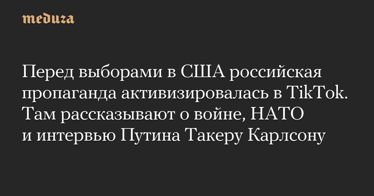 Перед выборами в США российская пропаганда активизировалась в TikTok. Там рассказывают о войне, НАТО и интервью Путина Такеру Карлсону