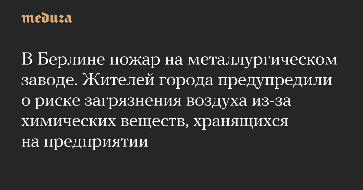 Власти опасаются, что дым распространится на большую часть западного Берлина. Жители этой части города, с которыми поговорила «Медуза», рассказали, что ощущают химический запах в воздухе. Экстренные службы рекомендовали жителям города держать окна и двери закрытыми, отключить кондиционеры и избегать задымленных районов.