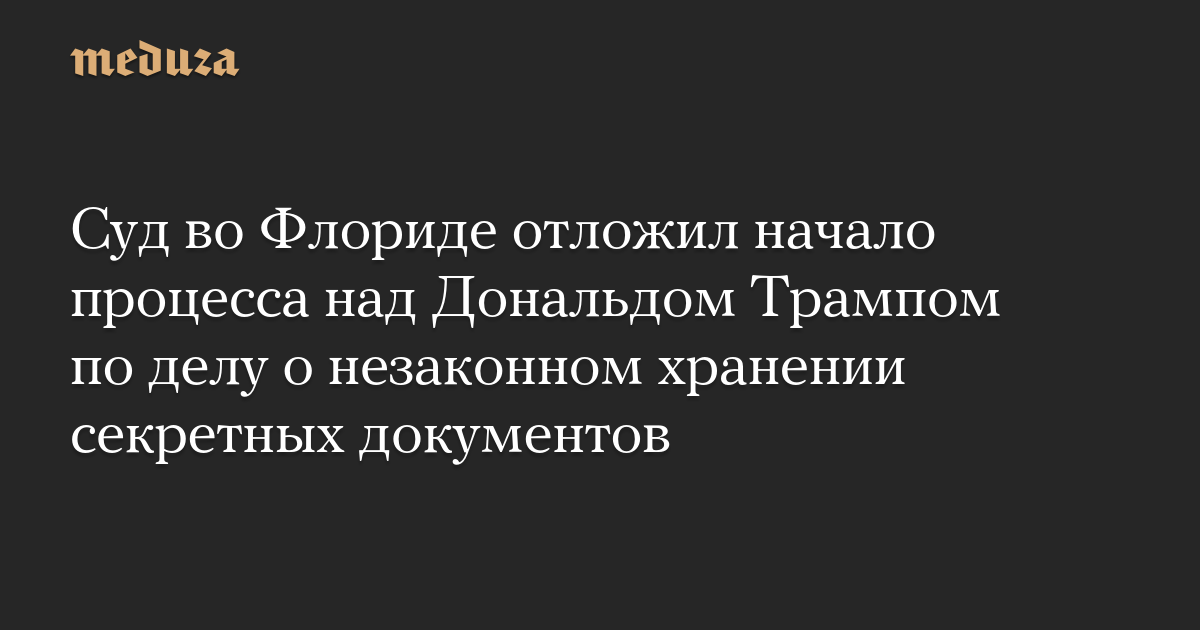 Ранее ожидалось, что процесс начнется 20 мая, но и обвинение, и защита признали, что заседание нужно отложить. Судья Эйлин Кэннон, назначенная Трампом на должность в 2020 году, назначила досудебные слушания на 22 июля, но не определила новую дату начала процесса.