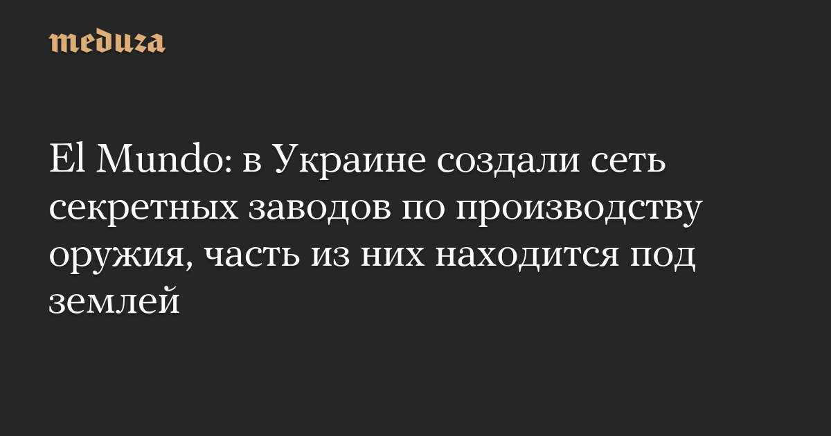 El Mundo: в Украине создали сеть секретных заводов по производству оружия, часть из них находится под землей