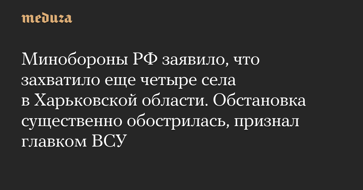 Минобороны РФ заявило, что захватило еще четыре села в Харьковской области. Обстановка существенно обострилась, признал главком ВСУ
