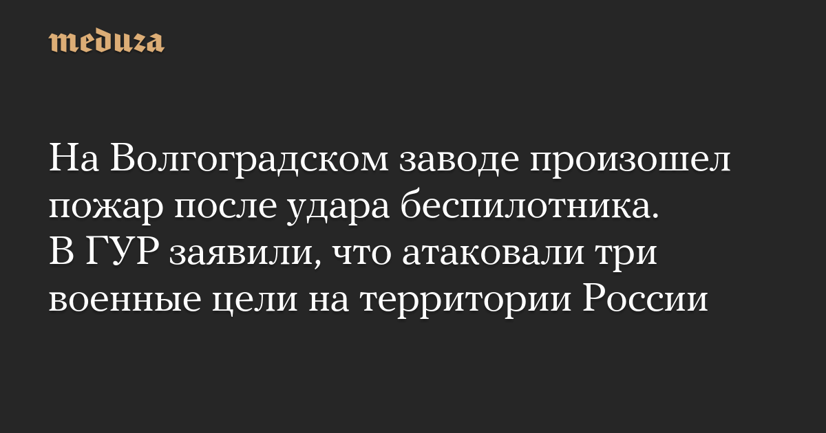 На Волгоградском заводе произошел пожар после удара беспилотника. В ГУР заявили, что атаковали три военные цели на территории России