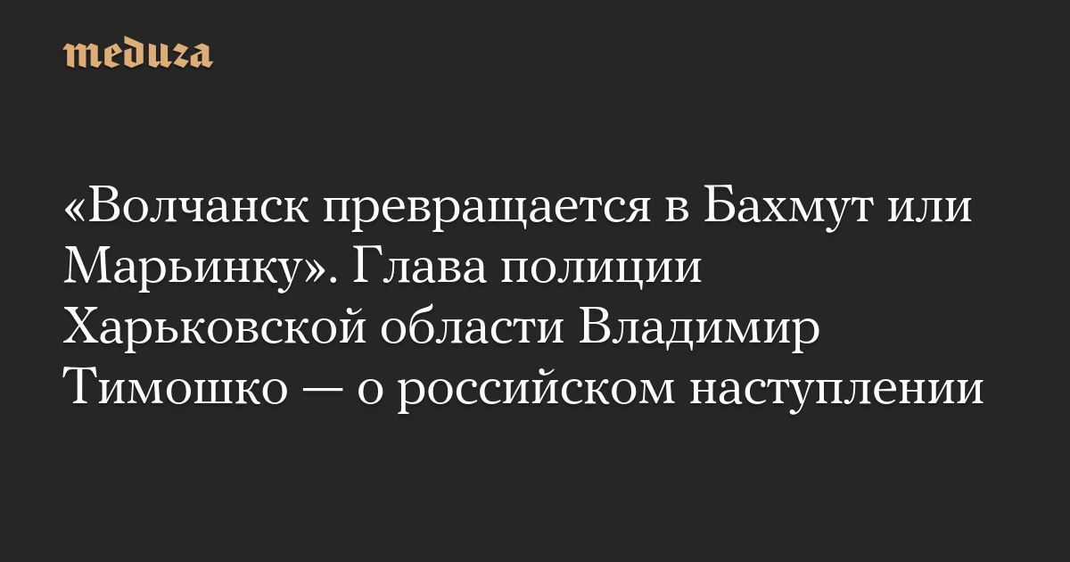 «Волчанск превращается в Бахмут или Марьинку». Глава полиции Харьковской области Владимир Тимошко — о российском наступлении