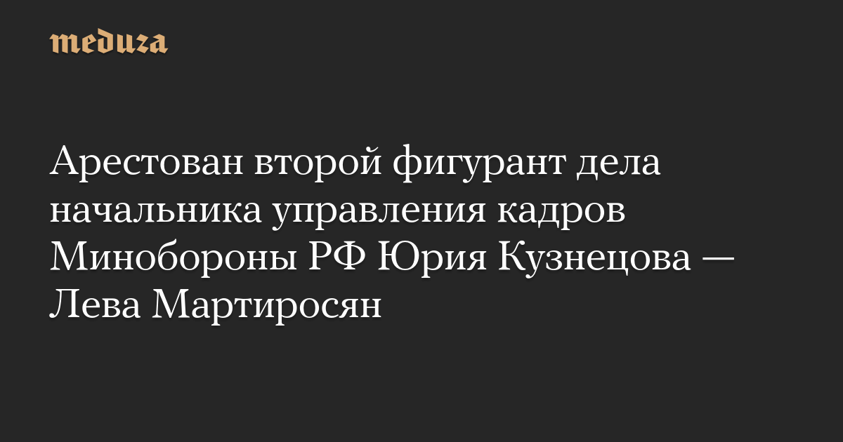 Арестован второй фигурант дела начальника управления кадров Минобороны РФ Юрия Кузнецова — Лева Мартиросян