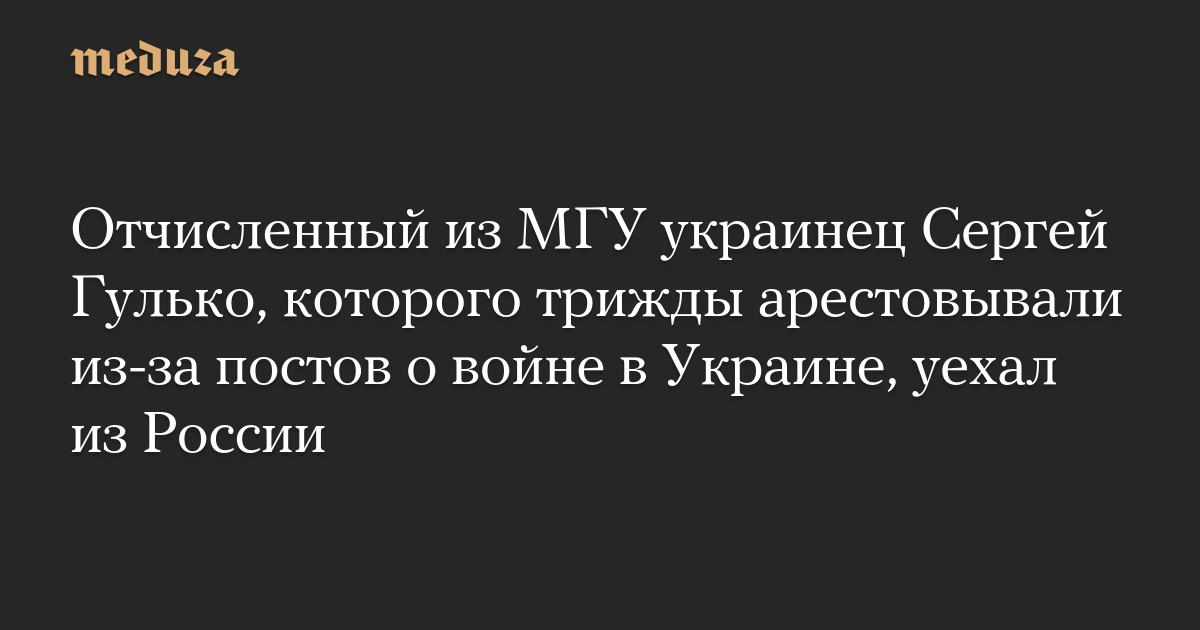 Отчисленный из МГУ украинец Сергей Гулько, которого трижды арестовывали из-за постов о войне в Украине, уехал из России