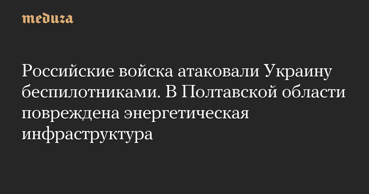 Российские войска атаковали Украину беспилотниками. В Полтавской области повреждена энергетическая инфраструктура