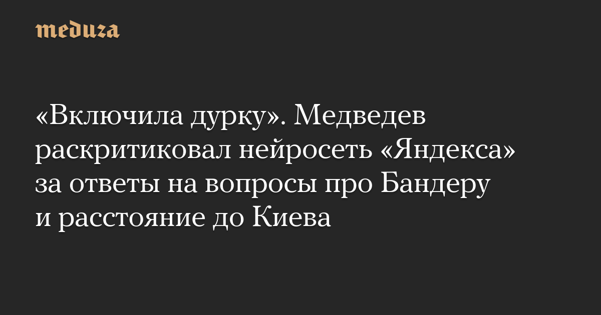 «Включила дурку». Медведев раскритиковал нейросеть «Яндекса» за ответы на вопросы про Бандеру и расстояние до Киева
