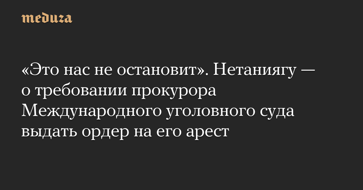 Премьер-министр Израиля Биньямин Нетаниягу назвал «скандальным» запрос прокурора Международного уголовного суда (МУС), который потребовал выдачи ордера на его арест. Как пишет Ynet, Нетаниягу заявил на заседании фракции «Ликуд», что «это не остановит ни меня, ни нас».