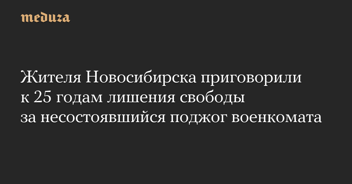 Жителя Новосибирска приговорили к 25 годам лишения свободы за несостоявшийся поджог военкомата