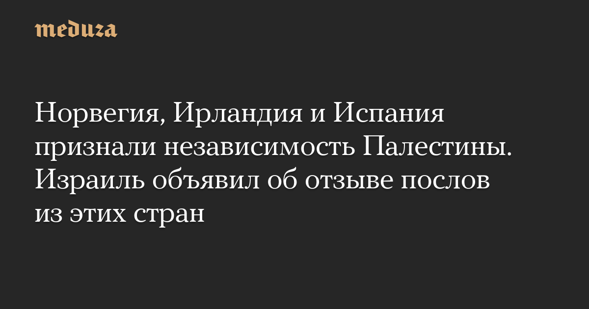 Норвегия, Ирландия и Испания признали независимость Палестины. Израиль объявил об отзыве послов из этих стран