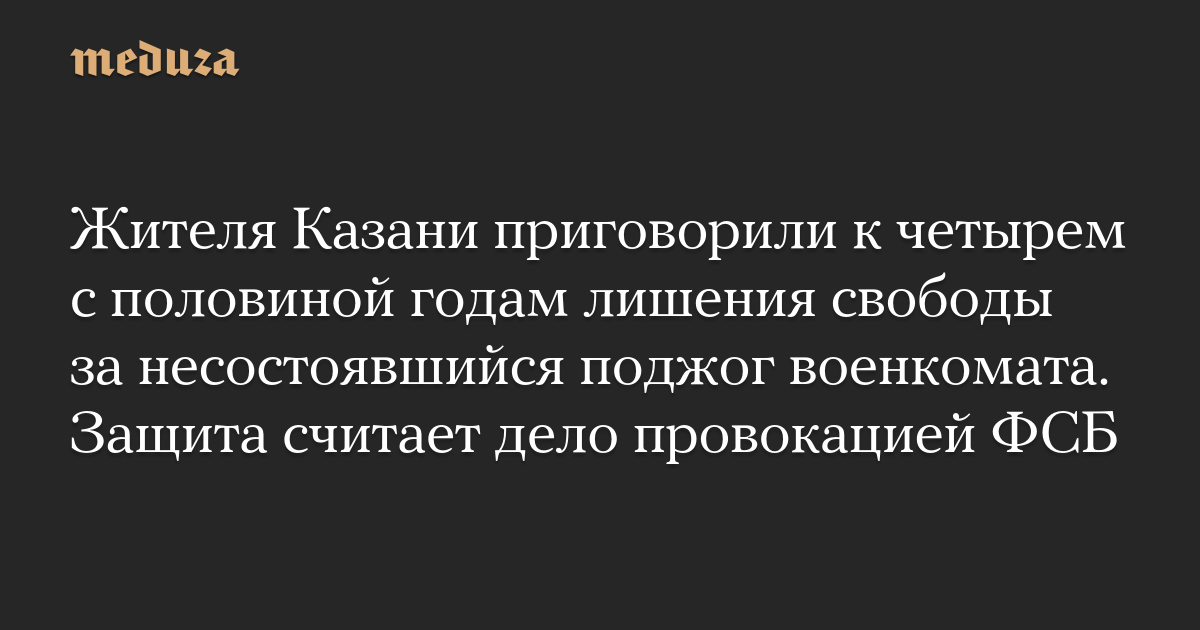 Жителя Казани приговорили к четырем с половиной годам лишения свободы за несостоявшийся поджог военкомата. Защита считает дело провокацией ФСБ