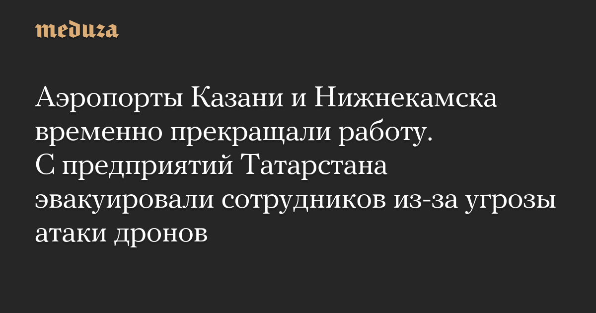 Аэропорты Казани и Нижнекамска временно прекращали работу. С предприятий Татарстана эвакуировали сотрудников из-за угрозы атаки дронов
