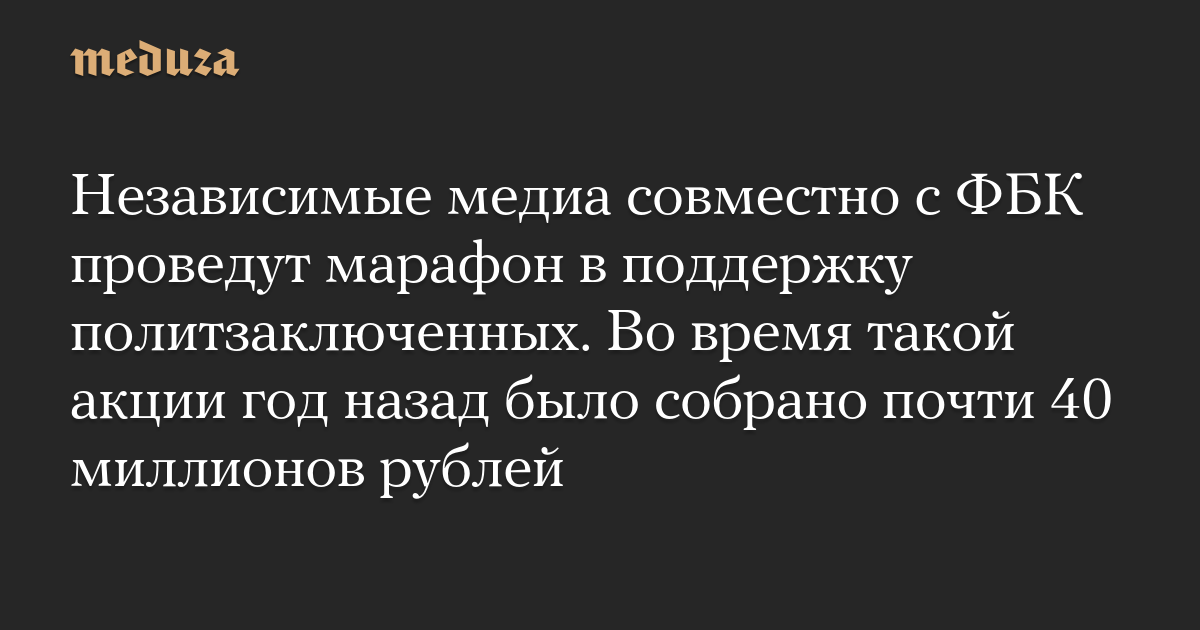 Независимые медиа совместно с ФБК проведут марафон в поддержку политзаключенных. Во время такой акции год назад было собрано почти 40 миллионов рублей