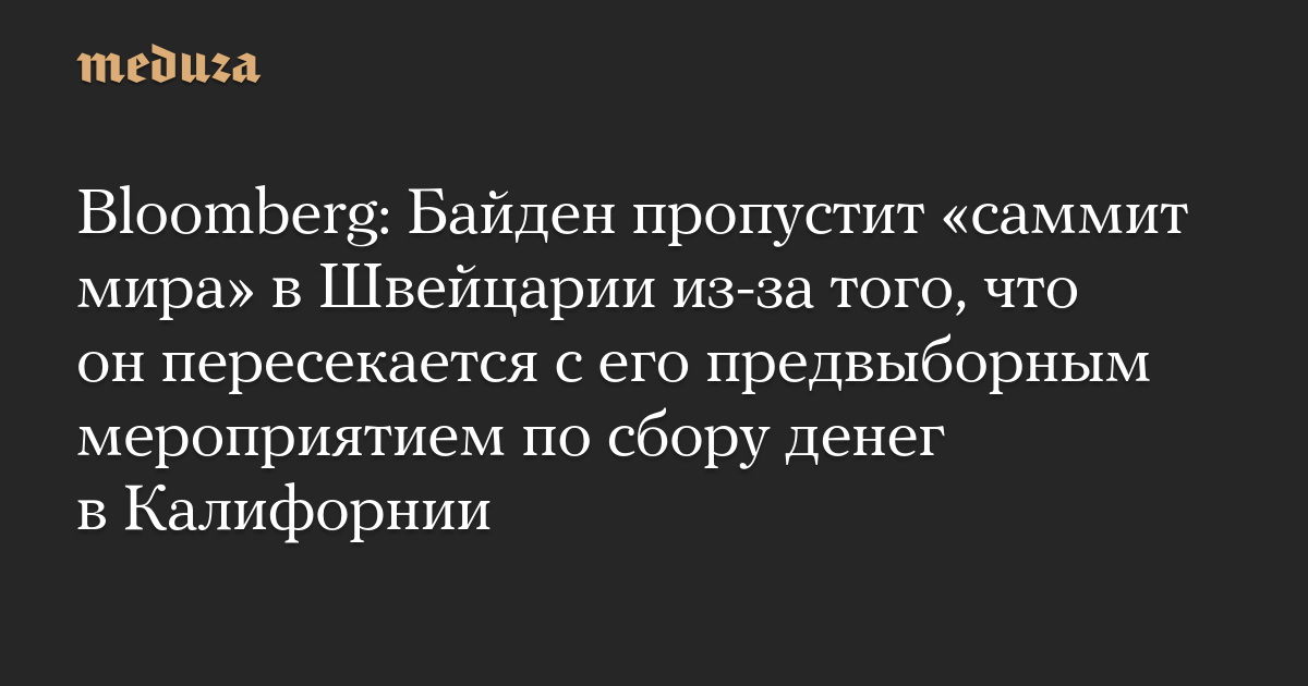 Bloomberg: Байден пропустит «саммит мира» в Швейцарии из-за того, что он пересекается с его предвыборным мероприятием по сбору денег в Калифорнии