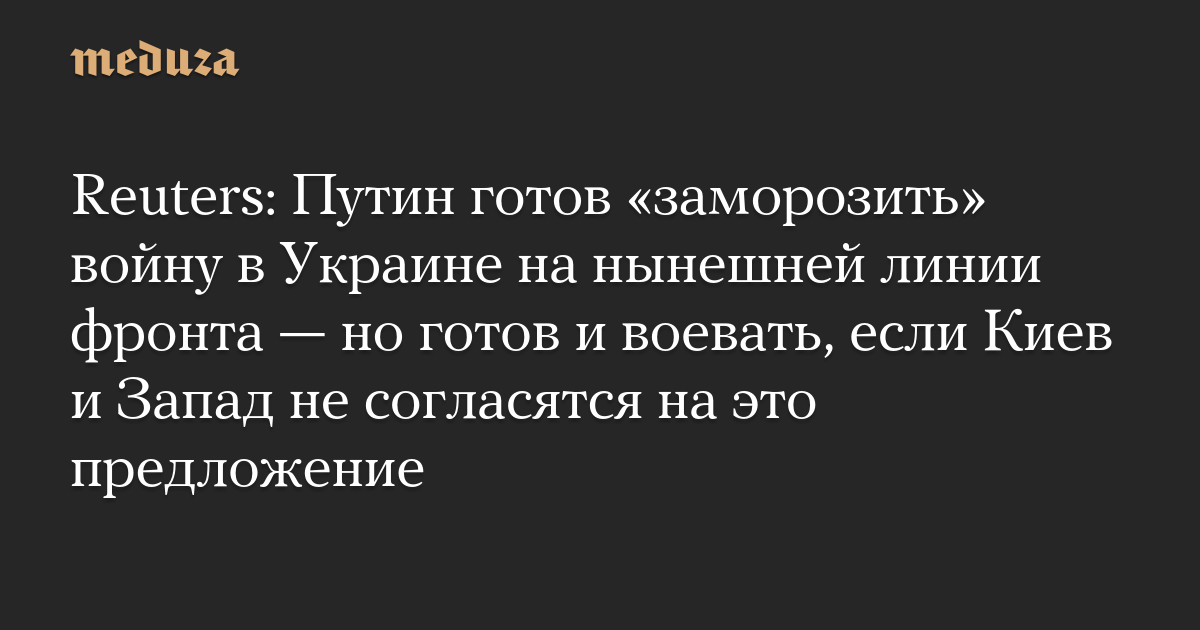 Reuters: Путин готов «заморозить» войну в Украине на нынешней линии фронта — но готов и воевать, если Киев и Запад не согласятся на это предложение