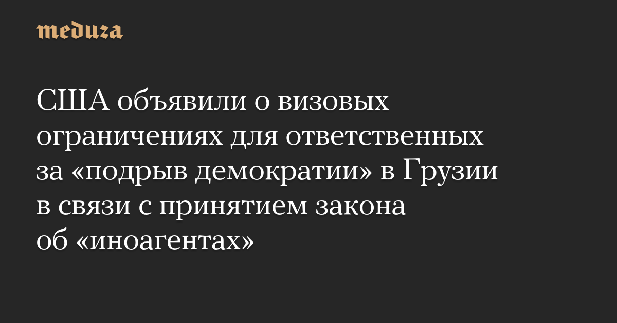 США объявили о визовых ограничениях для ответственных за «подрыв демократии» в Грузии в связи с принятием закона об «иноагентах»
