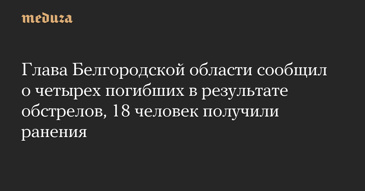 Глава Белгородской области сообщил о четырех погибших в результате обстрелов, 18 человек получили ранения