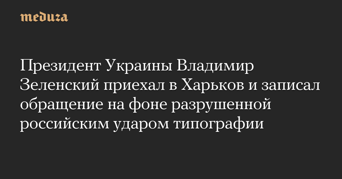 Президент Украины Владимир Зеленский приехал в Харьков — город, по которому войска РФ ежедневно наносят удары. Он записал видеообращение с места одного их таких ударов — типографии «Виват», которую войска РФ обстреляли ракетами 23 мая. Тогда погибли семь сотрудников типографии, более 20 человек получили ранения, сгорели более 50 тысяч изданий, хранившихся на складе.