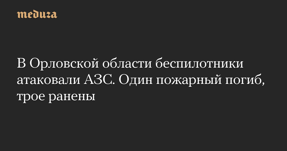 В Орловской области беспилотники атаковали АЗС. Один пожарный погиб, трое ранены