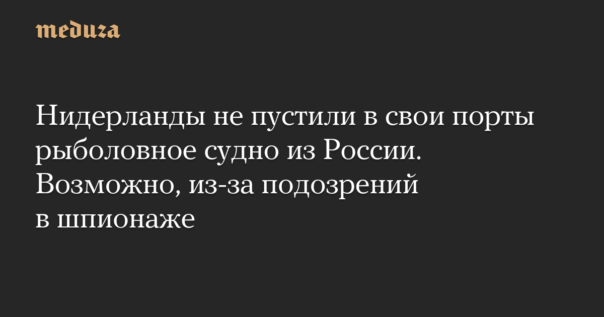 Нидерланды не пустили в свои порты рыболовное судно из России. Возможно, из-за подозрений в шпионаже