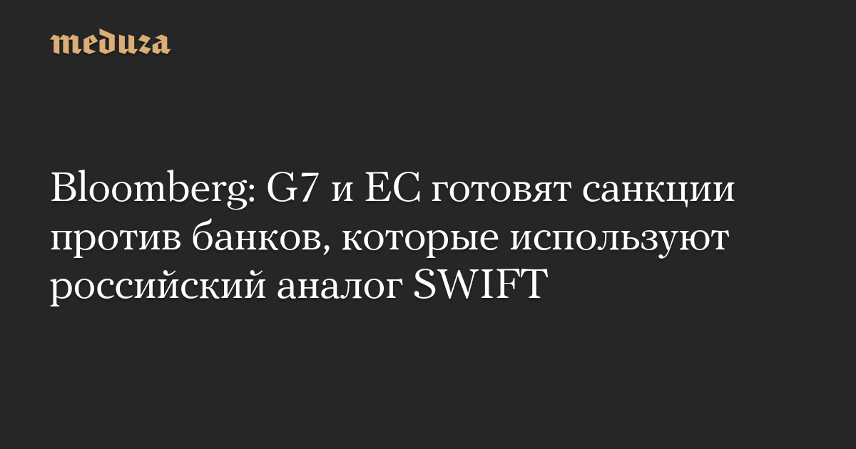 Bloomberg: G7 и ЕС готовят санкции против банков, которые используют российский аналог SWIFT
