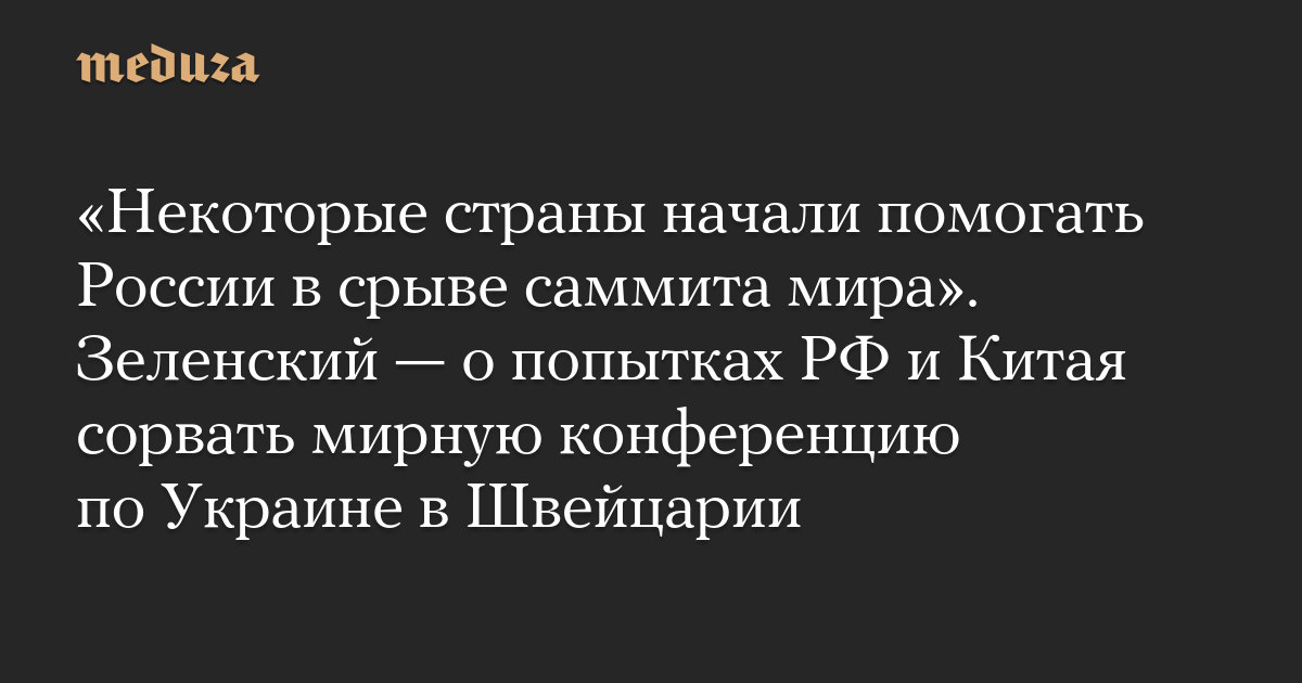«Некоторые страны начали помогать России в срыве саммита мира». Зеленский — о попытках РФ и Китая сорвать мирную конференцию по Украине в Швейцарии