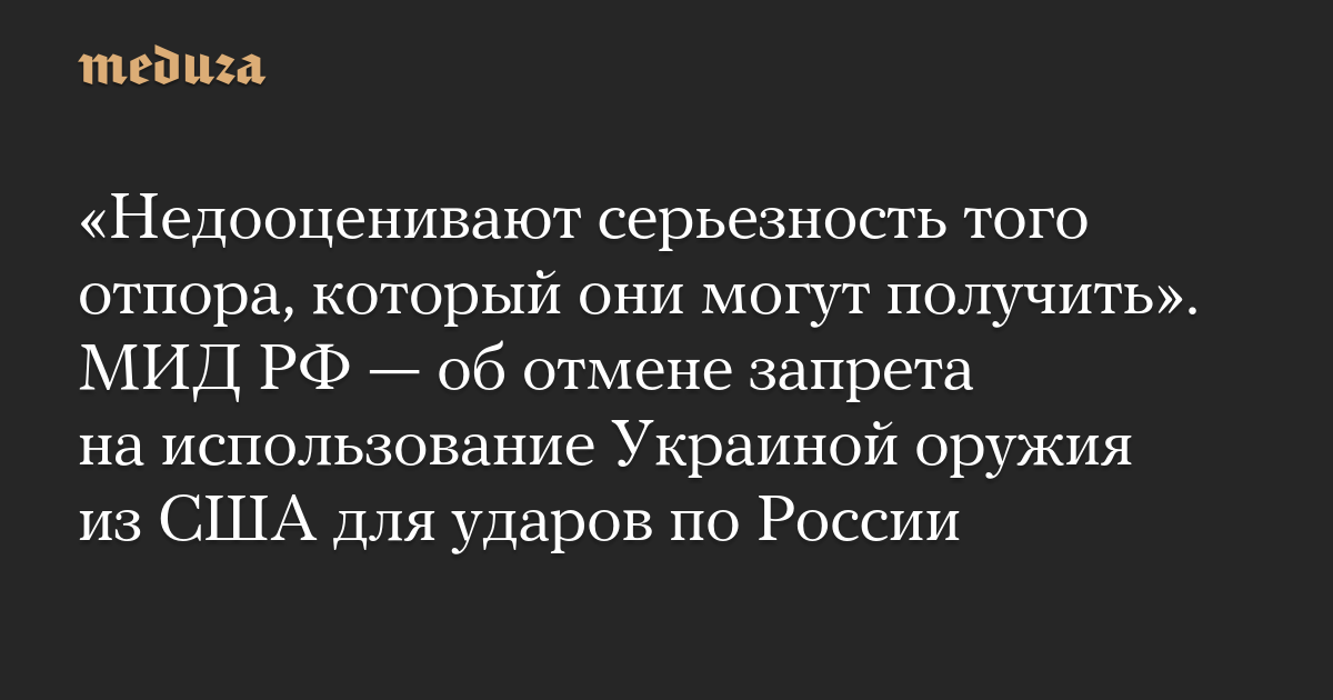 «Недооценивают серьезность того отпора, который они могут получить». МИД РФ — об отмене запрета на использование Украиной оружия из США для ударов по России