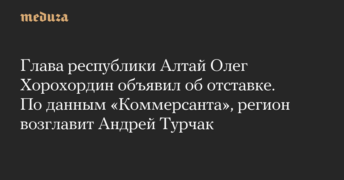 Глава республики Алтай Олег Хорохордин объявил об отставке. По данным «Коммерсанта», регион возглавит Андрей Турчак