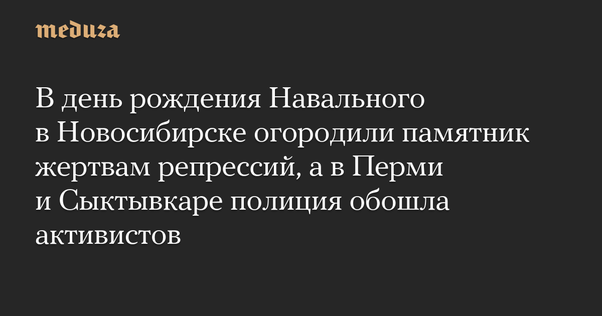 В день рождения Навального в Новосибирске огородили памятник жертвам репрессий, а в Перми и Сыктывкаре полиция обошла активистов