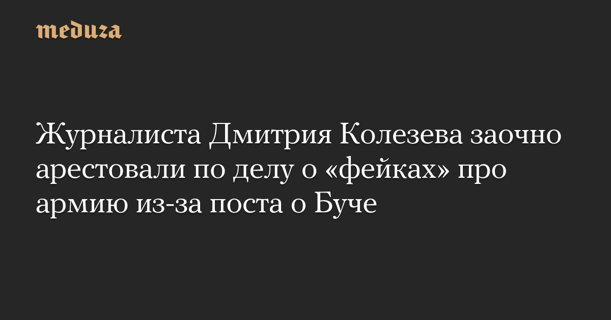 Журналиста Дмитрия Колезева заочно арестовали по делу о «фейках» про армию из-за поста о Буче