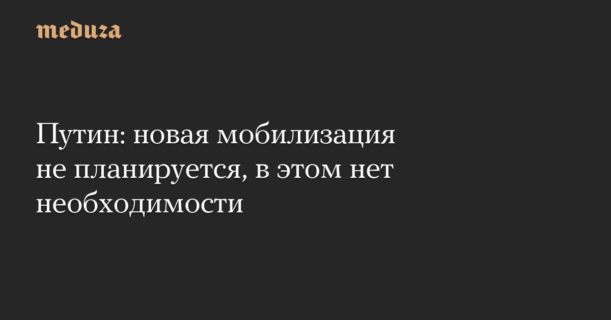 Путин: новая мобилизация не планируется, в этом нет необходимости