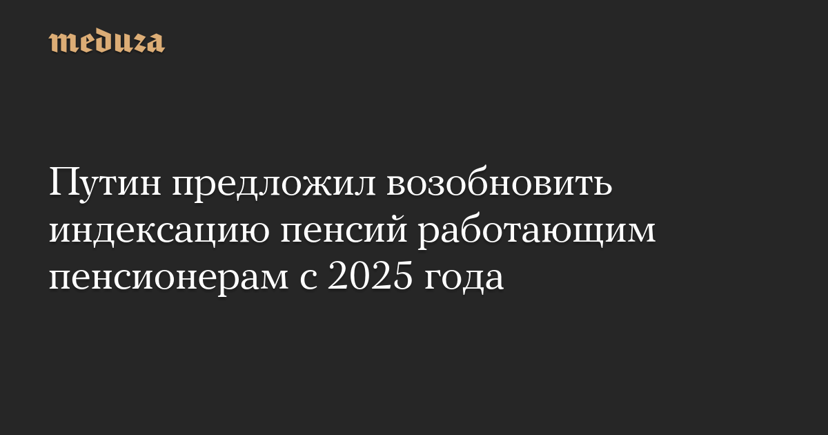 Путин предложил возобновить индексацию пенсий работающим пенсионерам с 2025 года