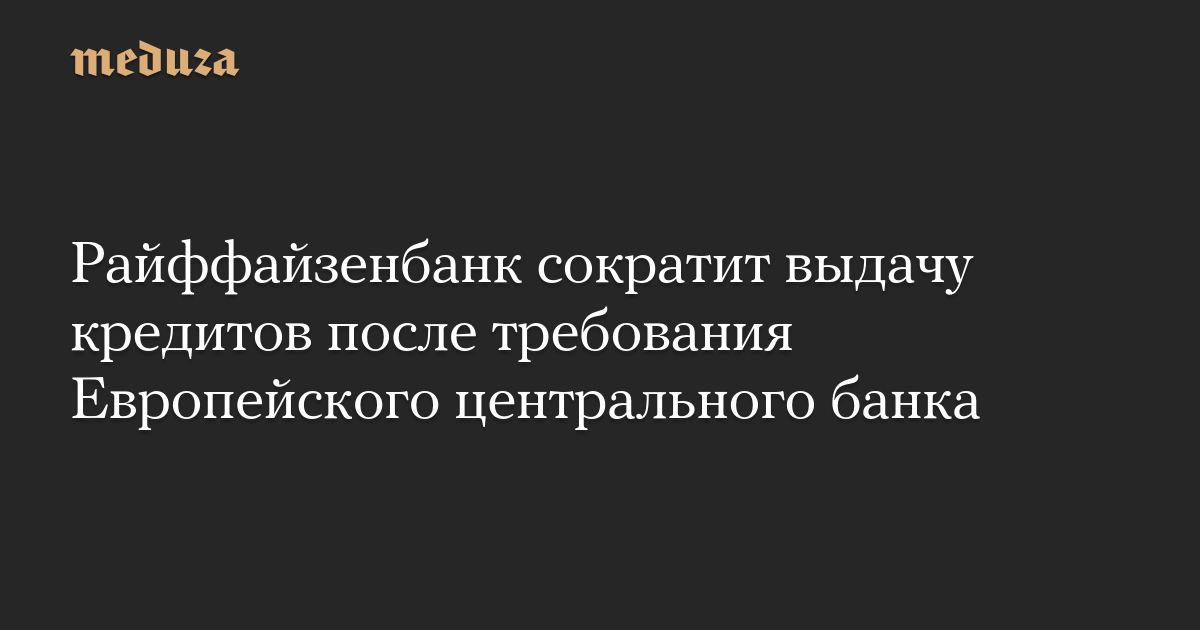 В начале мая глава Raiffeisen Bank International Йоханн Штробль говорил, что банк начнет выполнять предписание ЕЦБ о существенном сокращении бизнеса в РФ в третьем квартале 2024 года. По его словам, речь идет почти о полной остановке кредитования — банк будет ждать погашения уже выданных ссуд и не выдавать новые «за несколькими исключениями».