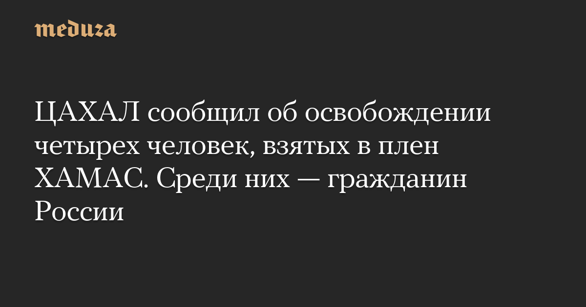 ЦАХАЛ сообщил об освобождении четырех человек, взятых в плен ХАМАС. Среди них — гражданин России