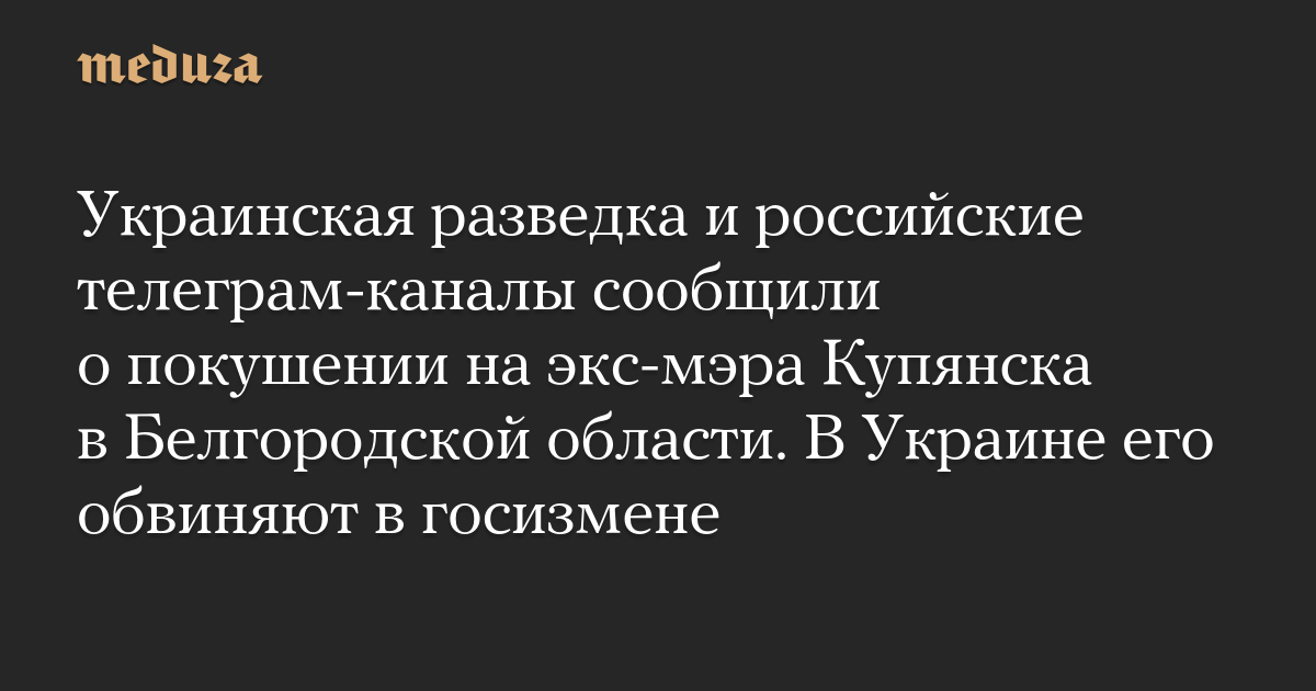 Украинская разведка и российские телеграм-каналы сообщили о покушении на экс-мэра Купянска в Белгородской области. В Украине его обвиняют в госизмене
