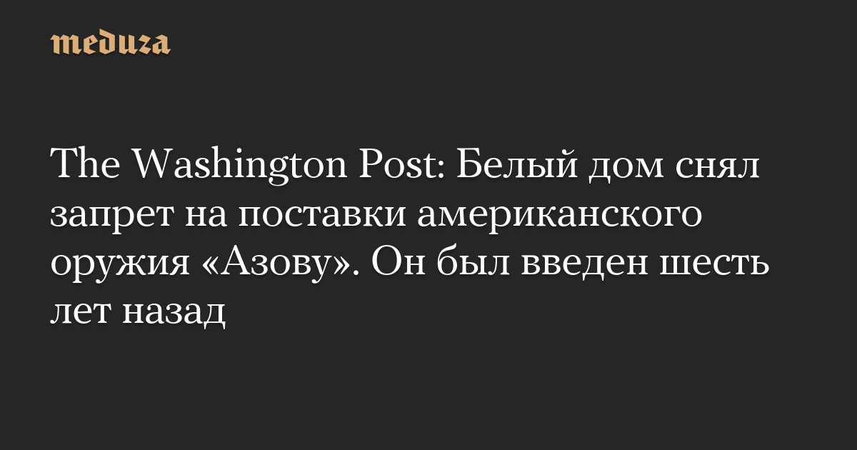 The Washington Post: Белый дом снял запрет на поставки американского оружия «Азову». Он был введен шесть лет назад