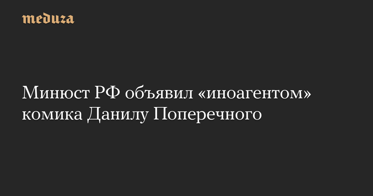 Министерство юстиции России обновило реестр «иностранных агентов», включив в список комика Данилу Поперечного.